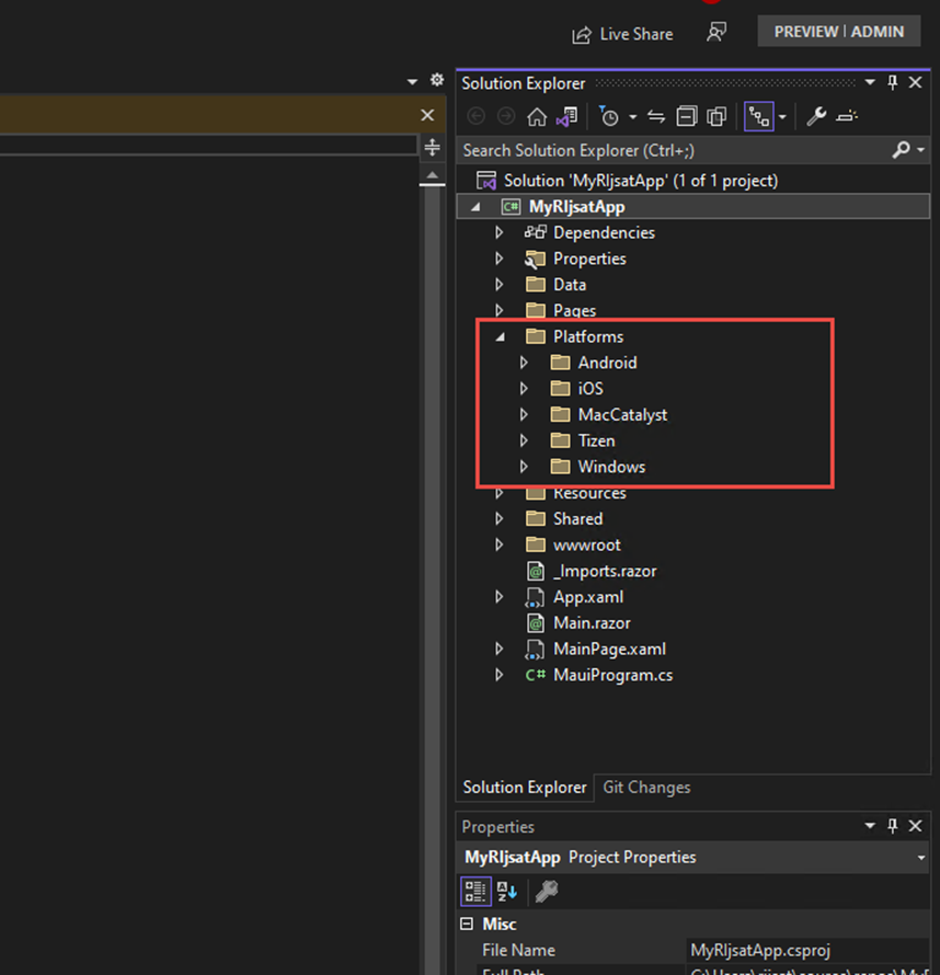 If we expand the platforms folder of the project, we will find all the platforms that .NET MAUI supports, as shown below.