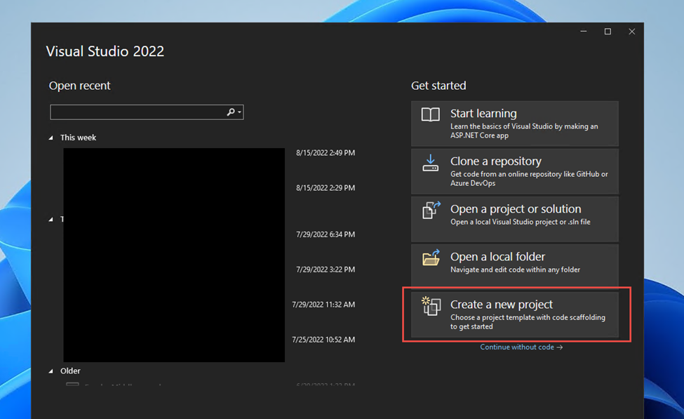 Now we will create a complete .NET MAUI Blazor App solution. Let’s begin by launching the Visual Studio 2022 Preview Version as shown below.